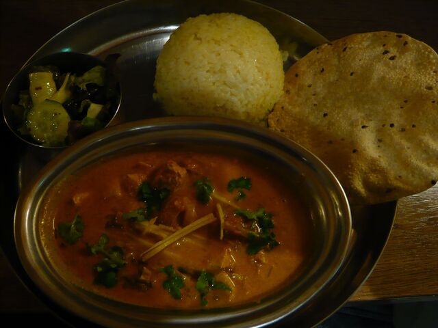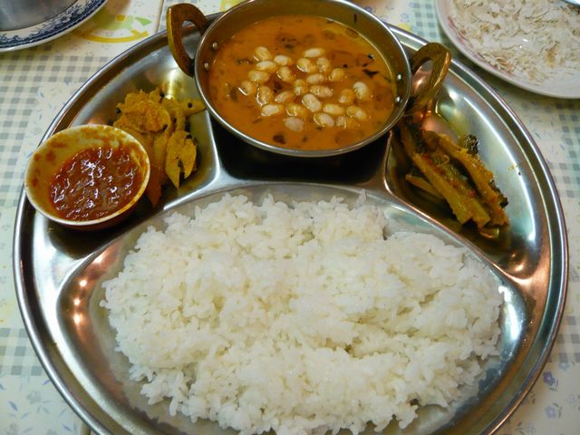 おかず類はお任せで、ムラコ(大根)アチャールと苦瓜のタルカリ。豆スープはいつもより心持ちコッテリ目。