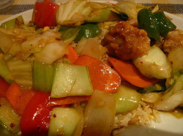 ミックスサブジ、勿論新鮮な生野菜使用。ナス皮の紫が美しい!。カリフラワーやナッツ類もタップリ。