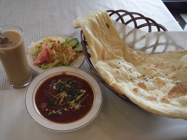 頂いたのは 「ラチャパラタセット(\1700)」 です。標準主食がナンでなくパラタなのは珍しいですね~。
