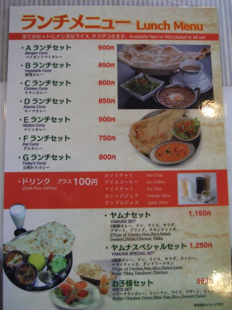 店頭のランチメニューを拝見すると、飲物別で主食追加は有料っぽいので 「ん?少しお高いかな?」