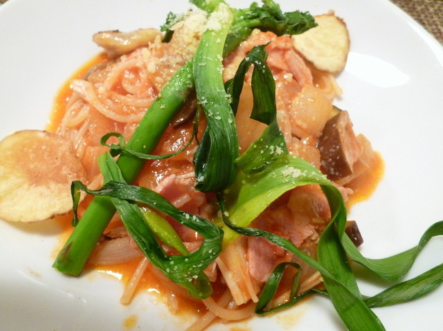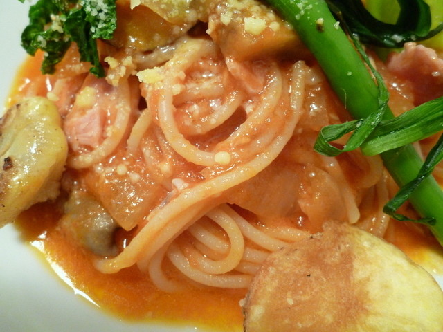続いて、パスタ。わっ、思ったよりもボリュームたっぷり!しかも熱々!