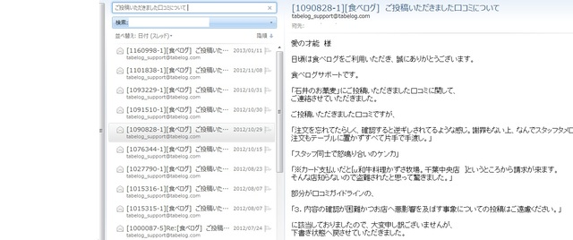 食べログからのお知らせメール一覧
