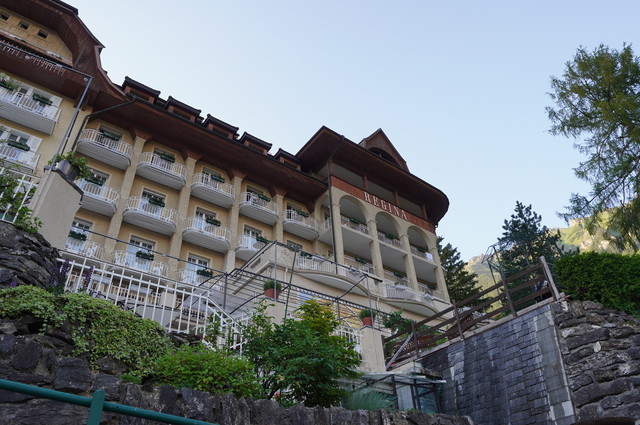 このホテルに2連泊。エレベーターは手動で重いドアを開けないといけないとか、1泊目にブレーカーが2回落ち、シャワーからお湯がでないというスイスの山岳ホテルでは「あるある」的な洗礼を受けていたのであまり印象は良くありません。