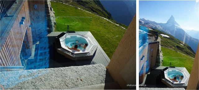 このホテルはツェルマットで2番目、1853年に建てられ、最近では2014年に前面リニューアルし、4ツ星ホテルに。内部だけでなく、マッターホルンを正面に見るジャグジー等スパエリアも設置。