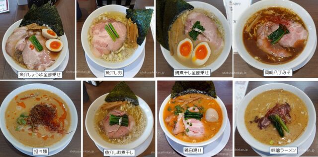 実食8種。麺屋あきのそら(愛知県岡崎市)食彩品館.jp撮