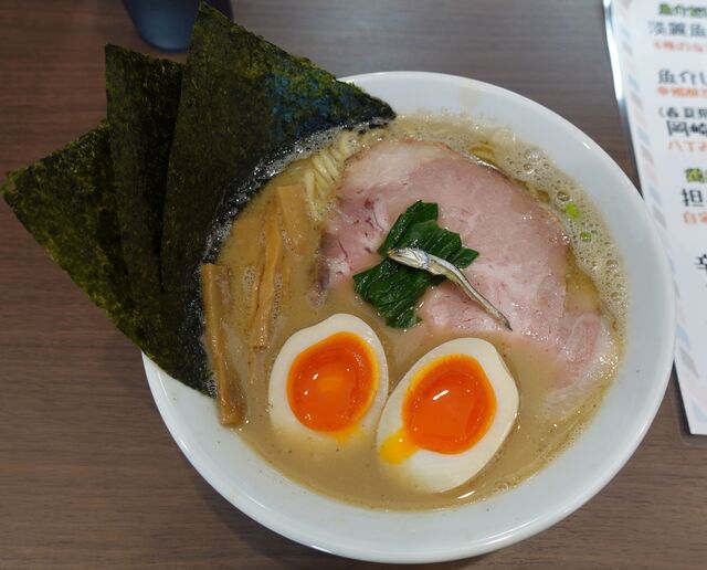 魚介しょうゆ830円プラス350円全部乗せ。麺屋あきのそら(岡崎市)食彩品館.jp