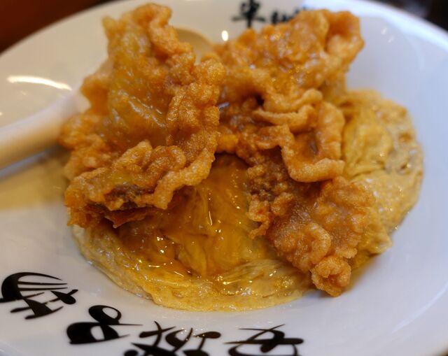 醤油と砂糖のタレを使用した玉子丼に豚肉の唐揚げを乗せた安城ソウルフードの北京飯。