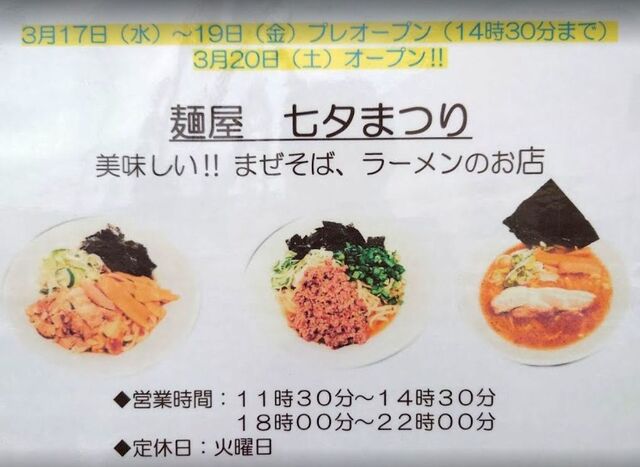 プレオープン価格。麺屋七夕まつり(豊田市) 食彩品館.jp撮影
