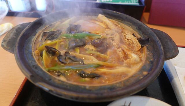 味噌煮込みは具だくさんでルックスとしてはきくらげの黒色が目立つ。