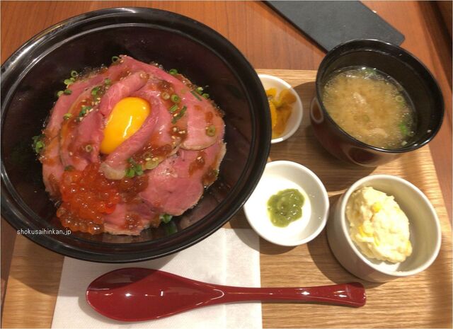 やはりここは人気ナンバー1メニューを食しておくかということで「たっぷりイクラのローストビーフ丼」を選択。