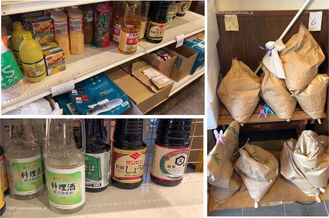 また、店舗入口付近から座席までの間に原材料や使用調味料の在庫が置かれていて、どこのメーカーの何を使っているのかがわかるのが面白い。