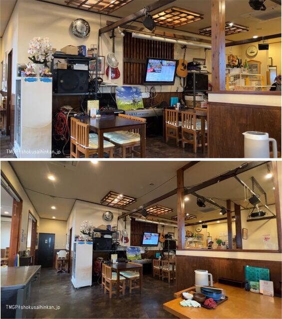 店内を見渡すとアコーステイックギターやベースギターが飾られていて、アンプやミキサーなんかもあるのでライブも演られているのでしょうか。