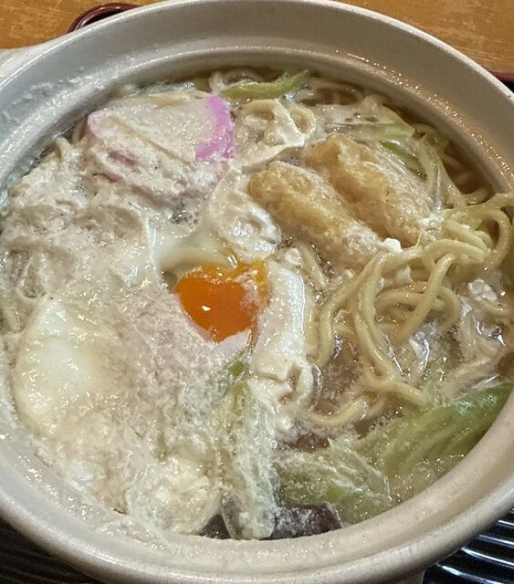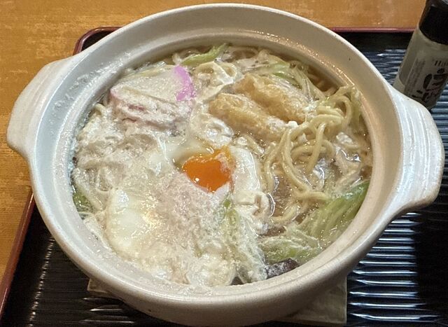 ルックスは細いうどんを使用した鍋焼きうどん。
