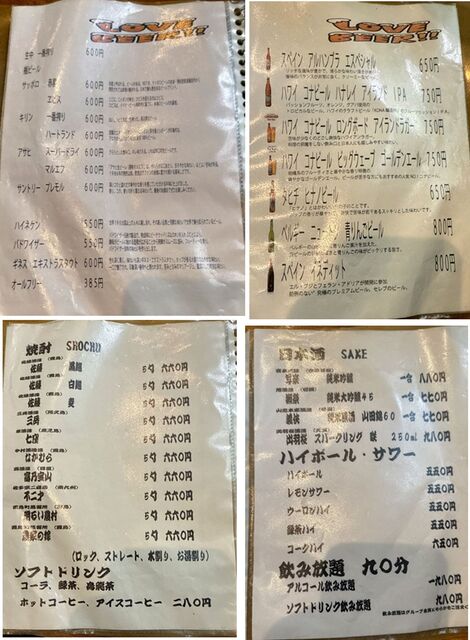 メニューは手書きでところどころ訂正があったり、税別表記のままだったり、ヨレヨレだったりするが味のあるメニューです。