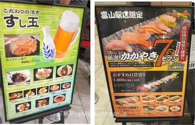 店頭看板,メニュー,2023年7月時点,すし玉富山駅店(JR富山駅)TMGP撮影