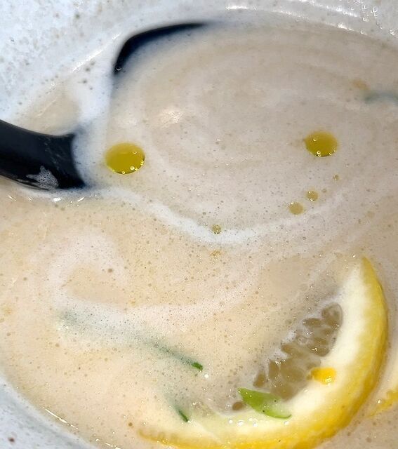 さて、どうするかと迷った挙句、「Lemonバター鶏そば1210円税込)」。ついでにトッピングとして味玉(165円税込)を追加。合計1,385円。