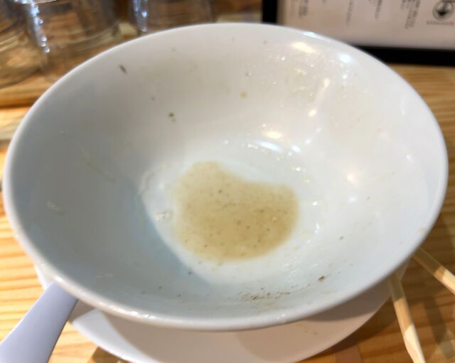 もう少し原材料由来の旨味が欲しいかなあとも思うが、このスープを自店製造したら人件費と光熱費が高騰してしまうのでセントラルキッチン製造は正解だと思う。