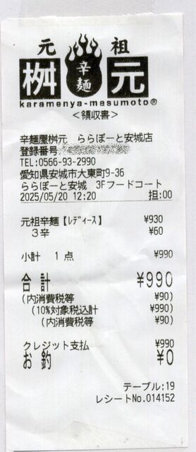 レシート(実食証明),辛麺屋桝元らららぽーと安城店(TMGP)撮影