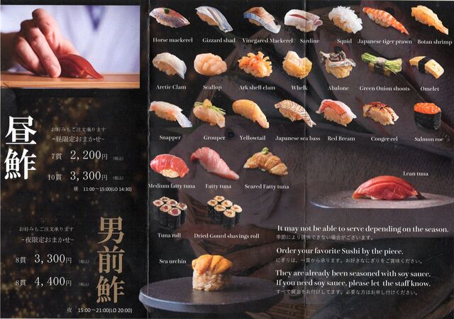 築地青空三代目が展開する店舗ブランド(×業態)は「築地青空三代目」、「琉球鮨」、そして今回実食した「男前鮓」等々、鮓・鮨・寿司の漢字意味をそれぞれ取り入れた印象の店舗ブランド(×業態)名称で、中でも“鮓”の漢字をあてた「男前鮓」について。