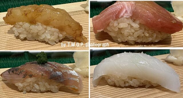 ↓ 廻転鮨 銀座おのでら本店クエ食べ比べ