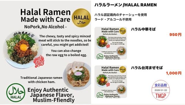 注目は「ハラル中華そば」。人口数百万の都会では珍しく無いが人口38万人の岡崎市(愛知県第3位人口)では珍しい。