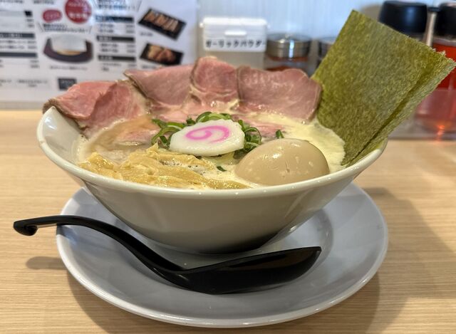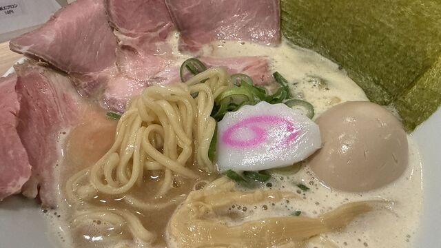 低温調理のチャーシューは苦手なミオグロビン色。ちょっと感心したのは当日の開店後3時間経過しているが、オキシ化がさほど進行していないこと。写真映りよりも実際はピンクの発色が良い。系列店(株式会社アス・ライズ運営店※)で実食しているが、その時もピンク発色が残っていた。