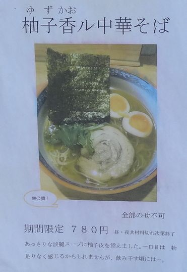 季節限定「柚子香ル中華そば」