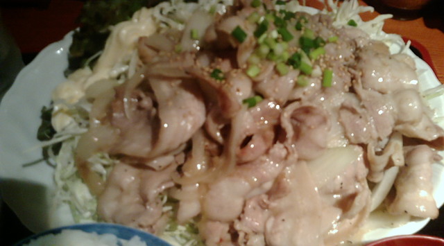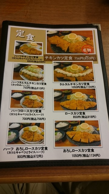 メニューは、ロースかつ定食(850円)、ひれかつ定食(1,050円)、レバかつ定食(750円)といった揚げ物から、ポークソテー定食(850円)、しょうが焼定食(700円)、牛しょうが焼定食(1,350円)、はたまた納豆定食(600円)など多彩。20種類以上はあった。