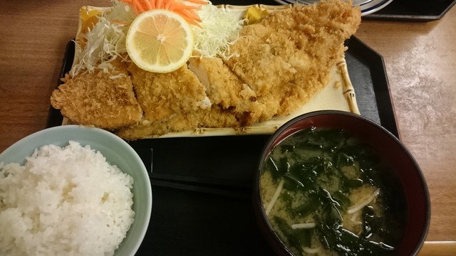 チキンかつは、掌くらいのサイズのものが2枚。即ち、両手が皿の上にのっているくらいのボリューム。これは食べ応えがある。