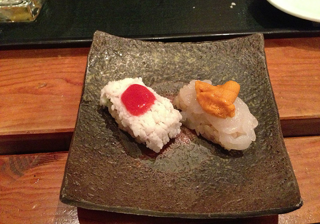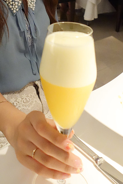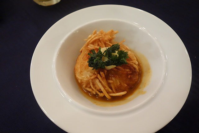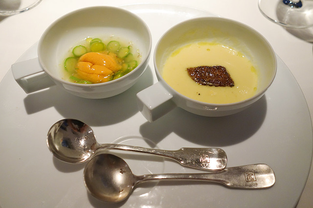 おまかせコースのスープ。冷製はコーンとフォアグラ