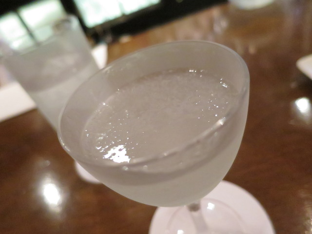 真子鰈の肝和え。これを見た瞬間にどうしても日本酒が飲みたくなり、ワインはここでストップ。訪れる前は最後までワインで通そうと思っていたのだが、こういうものが出てきたら日本酒を飲まずにはいられない。お任せでお願いすると、宗玄 特別純米酒 純酔無垢が提供された。