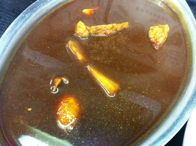 スパイスが結構効いたしゃばしゃばな汁気の多いカレーです。