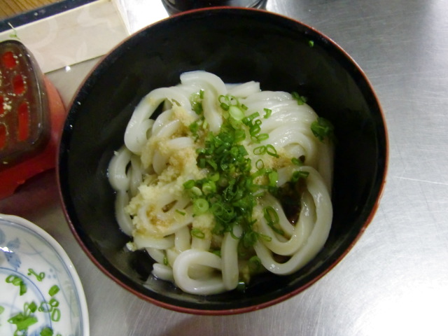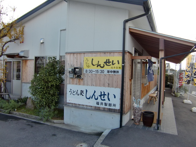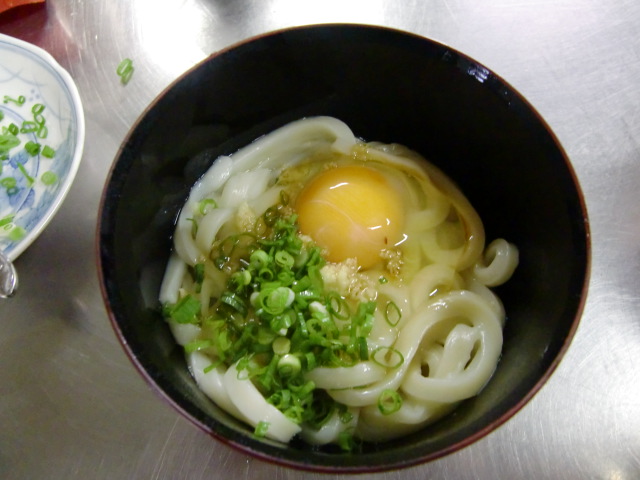 ナビに導かれるまま到着すると、そこは田舎のスーパーと言うか雑貨店みたいな感じ。レジの女性に「すみません、うどん食べたいんですが・・・」と言うと店の奥に向かって「○○君!うどん食べたいんだって」、奥から「20分待ってもらえます?」と返ってきたので我々は車の中で待ちました。20分経過後もう一度店内に行くと男性が「あと10分待ってもらえますか」と言ってきた。「この人が○○君かぁ」と思いながら車で更に待っていると5分ぐらい経過した時に○○君が「お待たせしました」と呼びにきた。