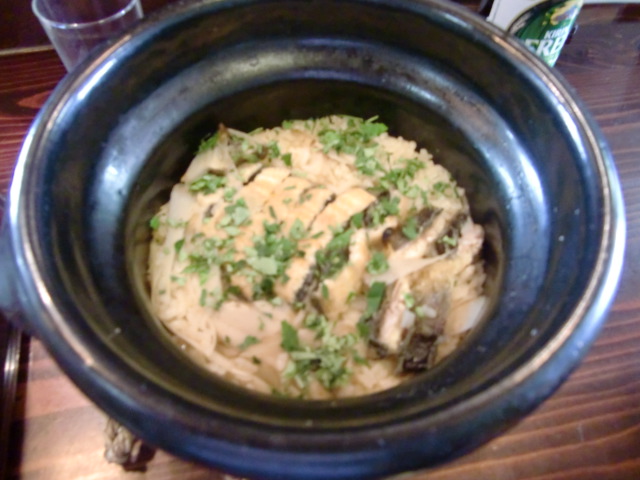 主人曰く「夜は当日に捕れた物を出すが、昼は流石にそういう訳にも行かない。ここから何時間もかけて上流に行った四万十の支流で捕れた鮎だから。コレは昨日の鮎を生け簀で生かした物だけどだいぶ痩せてる。」だそうな。