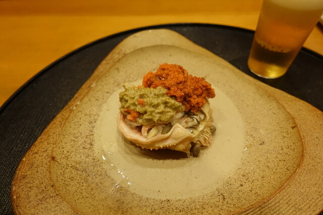 今夜特に印象に残った一品。帆立貝のクリームの濃厚さとキャビアの塩気がジャスト。