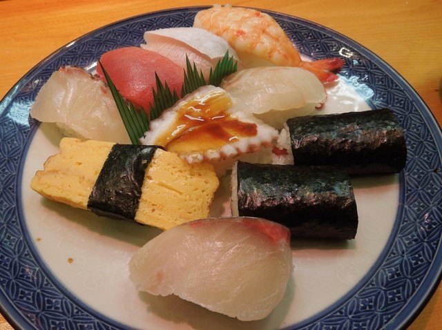 すべて三区分された細長い皿に3種類の料理が盛り付けられて供されます。
