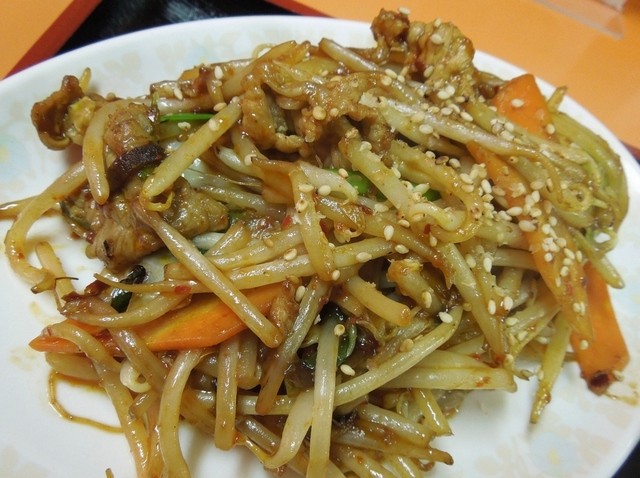 豚キムチはもやしがたっぷり入っているのでシャキシャキの食感ですが、