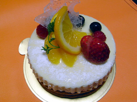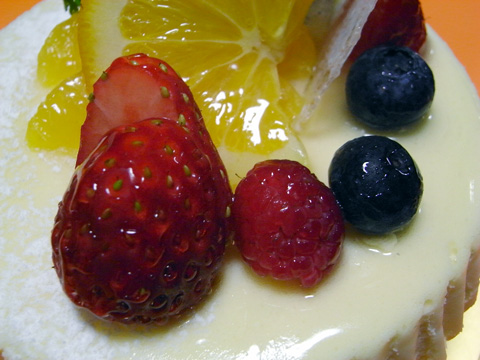 イチゴやブルーベリー・ラズベリー・オレンジが載っていて、チーズケーキとフルーツが意外と合うので目から鱗。