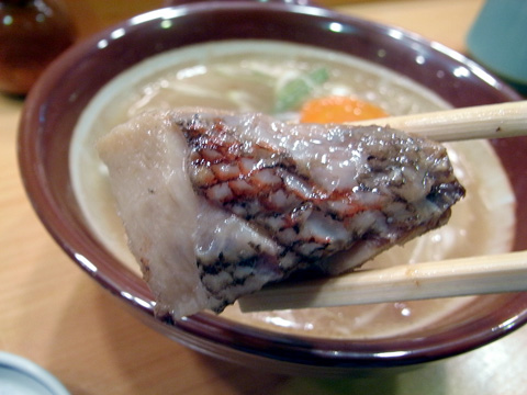 麺は自家栽培の小麦を、ふすま(ぬか)を残して挽いているそうで、色が少し黒っぽい。