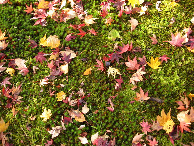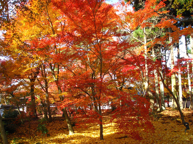 永観堂のお庭(黄色の絨毯に映える紅葉)