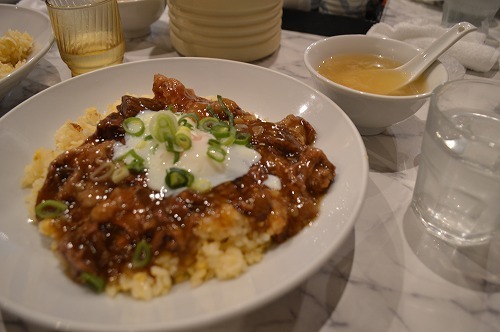 そしてお味は、チャーハンは具が卵だけのあっさりシンプルなんですが、牛すじの餡がとっても深いコクがあって、牛すじ自体もとっても柔らかく煮込まれていて、すっごく柔らかくてほろほろとするすじと、とっろとする脂が絶妙な美味しさです。