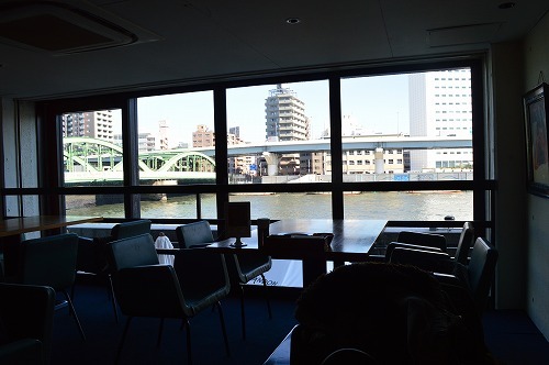 少ししてから案内されたのは、中2階と云うかロフトのようなスペースで、窓からは隅田川が眺められます。