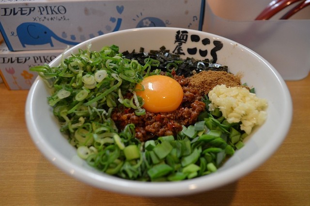 チーズトッピングだと、麺にチーズを絡ませた上に具を乗せるようなので、かなりマイルドな感じになるようですが、わたし的にはピリ辛が味わいたかったので、そのままのまぜそばです。