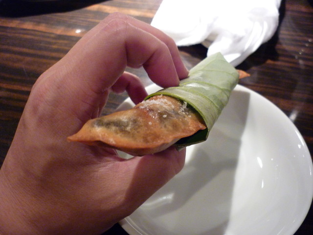 天然鮎の春捲 \2,625 … 要予約の夏季限定商品。蓮の葉にくるんでいただく。鮎の香りが素晴らしい。