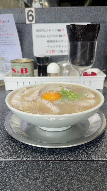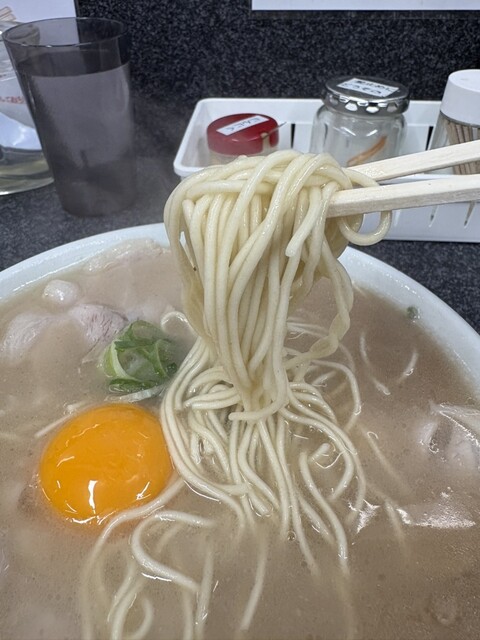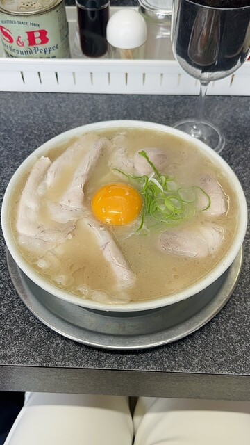 豚骨の一辺倒じゃない、程よく塩味効く洗練されたスープで美味しい。麺はツルツルでやわらかくスープによく馴染む。卵黄との相性◎、...