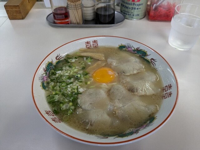 平日のランチで訪問しました。 パチンコ店の駐車場の端に、平屋の建物で営業されています。 見かけと同様に、内装も昔ながらのラーメン屋さんです。 豚骨臭が漂う店内です。 ラ... 詳細を見る