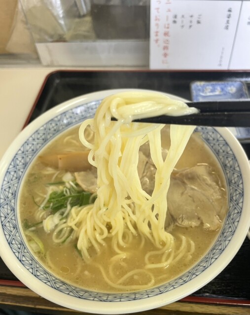 麺の太さが博多と同じ26番程の細さ。お店の方に伺うと昔は少し太かったかも?と仰った。