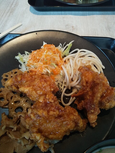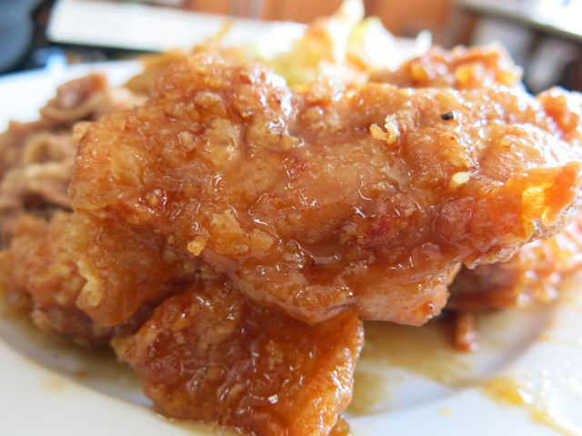 ウラベソースと書いてあったはず、それをかけた唐揚げ。大振りの唐揚げ...