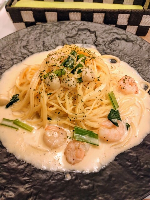 スイーツ&パスタランチ (パスタ・サラダ・パン・ケーキ・ドリンク) パスタは月替りの2種類から 小柱と小海老・小松菜のウニ風味クリームパスタを選択 ホテルマリターレ創世佐賀の1階にあるティーラウンジ「プリマヴェーラ」 7〜8回は来ていますが、今回はかなり久々 お値段は数年前から据置き... 詳細を見る