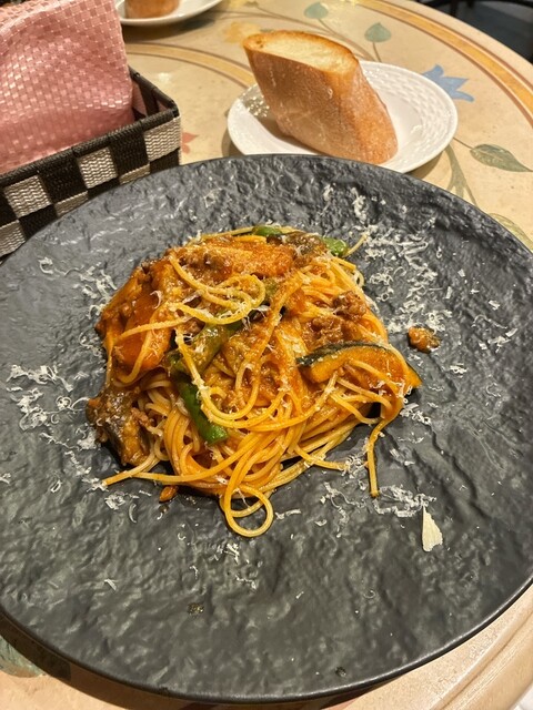 サラダ、ドリンク、パン、パスタ、ケーキがついて1500円。かなりコスパいいですね!